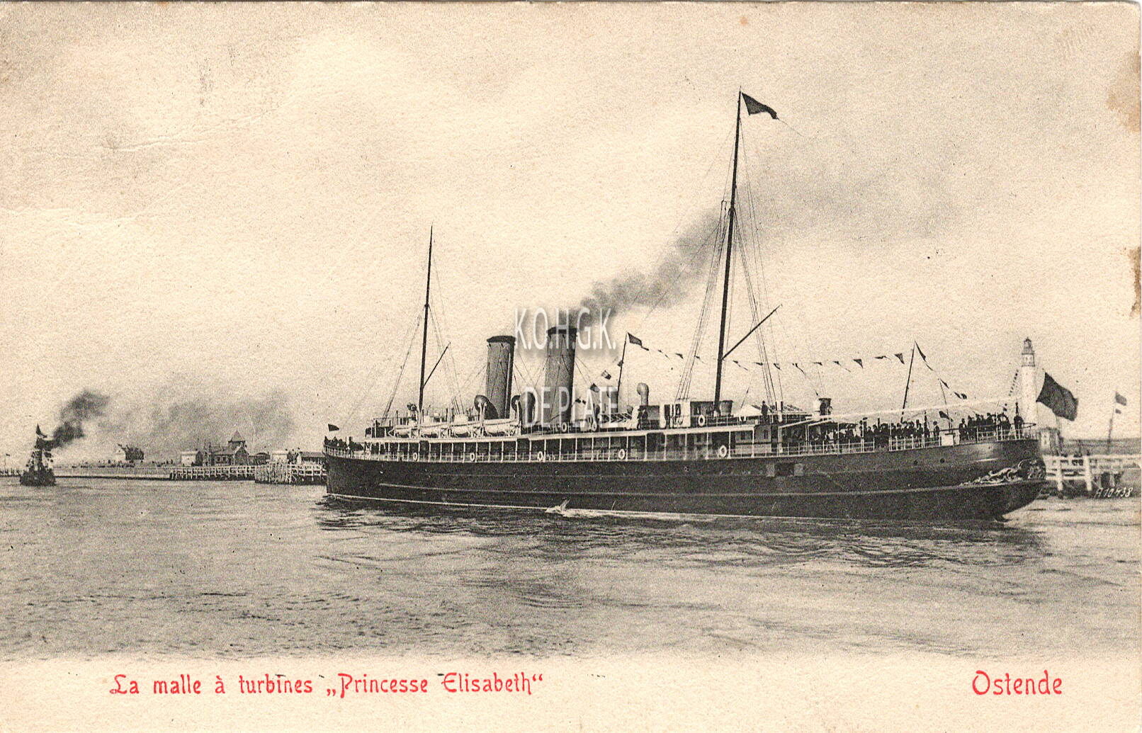 Omschrijving Edit. V.G., 42 avenue Midi, Bruxelles, N° 79. - Ostende - La malle à turbines "Princesse Elisabeth" Trefwoorden POSTKAARTEN VICTOR GREGOIRE/V.G. PRINCESSE ELISABETH (PAKKETBOOT) SCHEPEN ; PRINCESSE ELISABETH (PAKKETBOOT) PAKKETBOTEN OOSTENDE DOVER LIJN LIJNVAART HAVEN ; HAVENGEUL Plaatskenmerk ARCHIEF 202 08-09 POSTKAARTENARCHIEF Inventarisnummers 2023/0915 1905 Collectie Fotoarchief De Plate Uitgever Victor Grégoire (Brussel/Bruxelles) Print