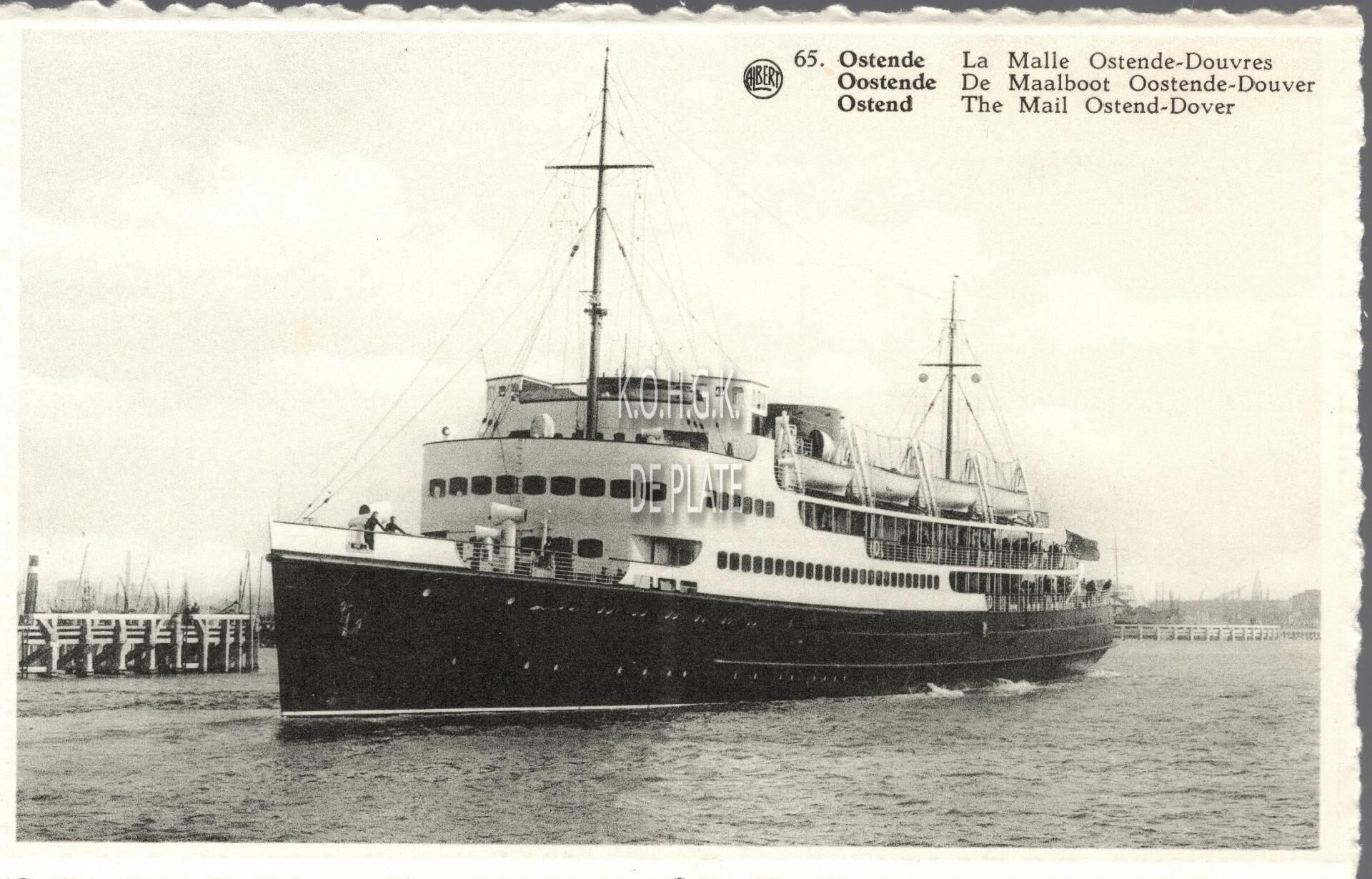Albert, nr. 65. - Ostende - La Malle Ostende-Douvres. Oostende - De Maalboot Oostende-Douver (sic). Ostend - The Mail Ostend-Dover. - De pakketboot "Prins Albert" vaart de haven van Oostende binnen.