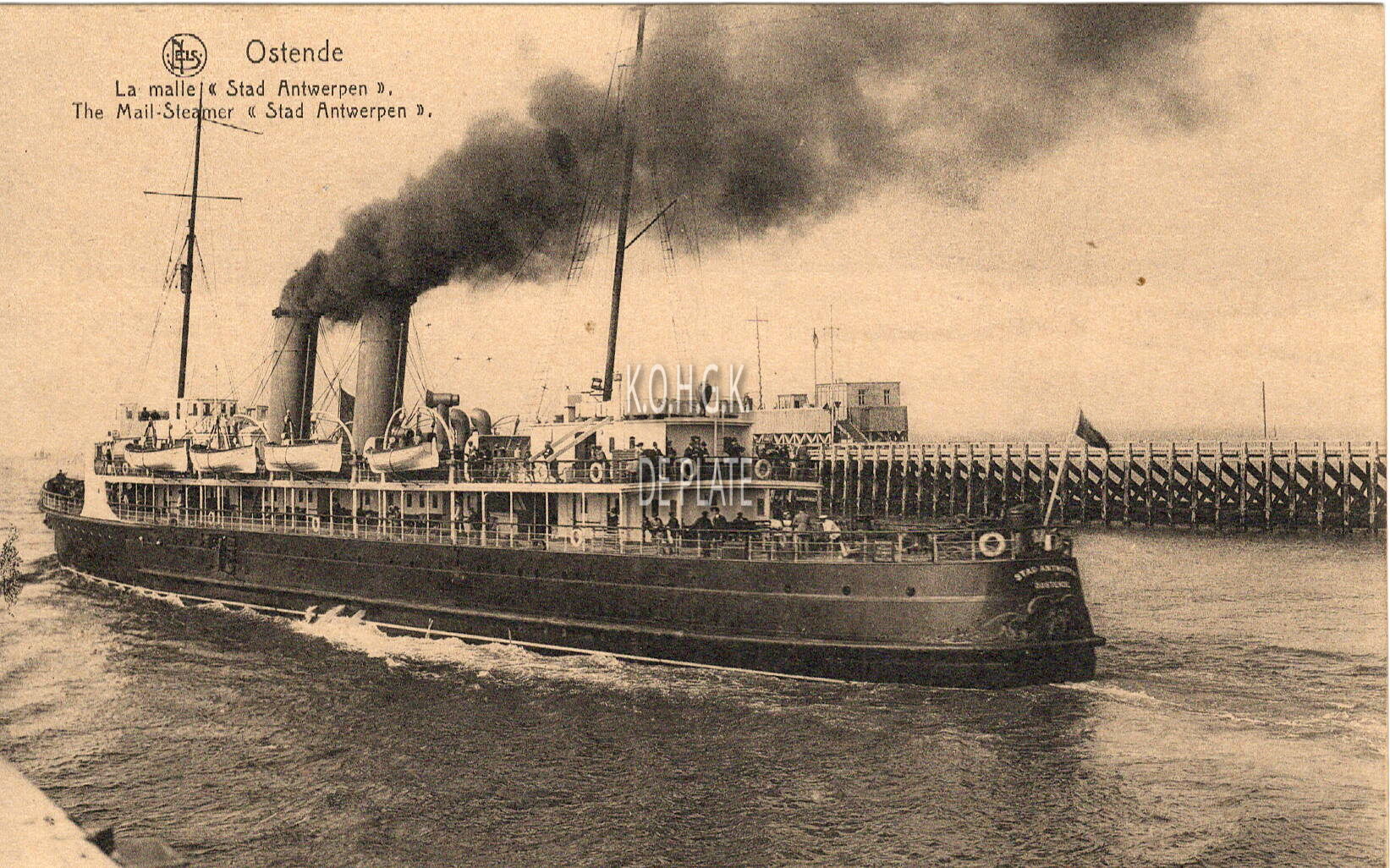 Postkaart : Pakketboot Stad Antwerpen in de havengeul