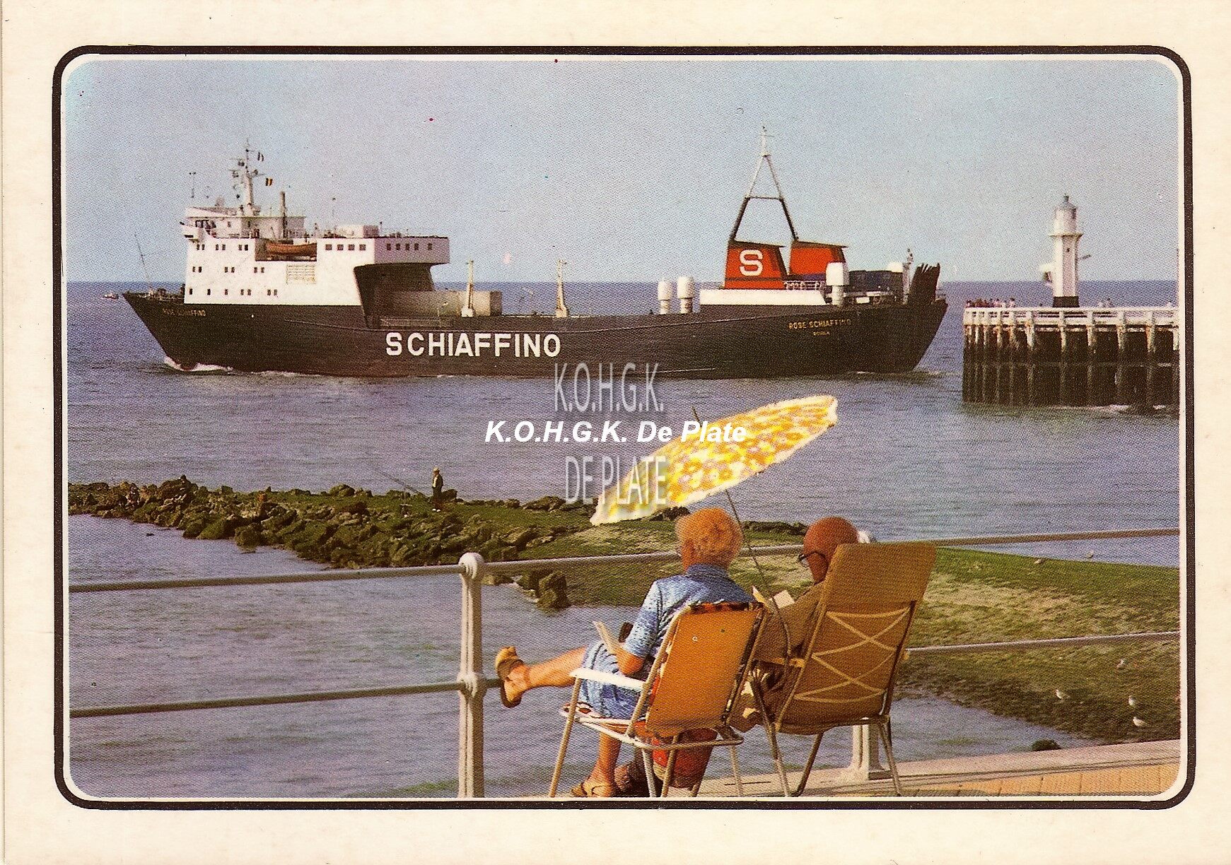 Postkaart DG Brugge N27. Kon ook 50 passagiers meenemen. Voer voor de rederij Schiaffino vanaf 1980 - 1984 de Oostende - Doverlijn en vanaf 03/1984 - 1987(?) de Oostende - Ramsgatelijn. (data onder voorbehoud)
