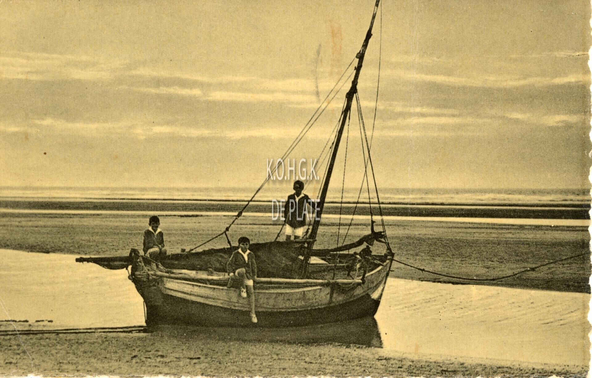 Omschrijving Denys-Vermeersch. - Strand bij zonsondergang. Kinderen op een roeiboot bij laag water op het strand Trefwoorden POSTKAARTEN DENYS-VERMEERSCH ZONSONDERGANG ROEIBOTEN Plaatskenmerk ARCHIEF 202 08-09 POSTKAARTENARCHIEF Inventarisnummers 2011/1334 Collectie Postkaartenarchief De Plate Uitgever Denys-Vermeersch Mariakerke Print