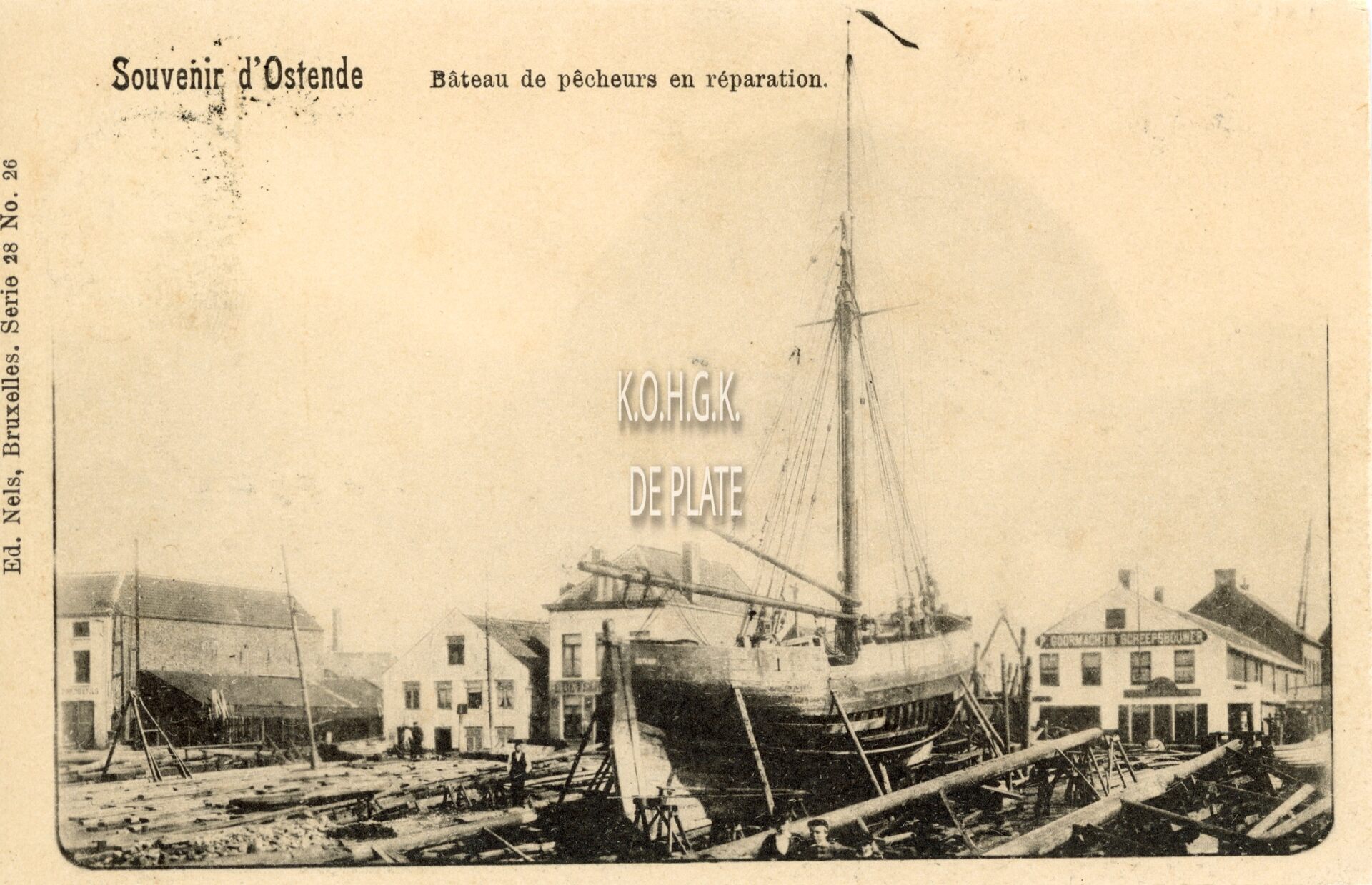 Nels 28, 26. - Souvenir d'Ostende. - Bâteau de pêcheurs en réparation.