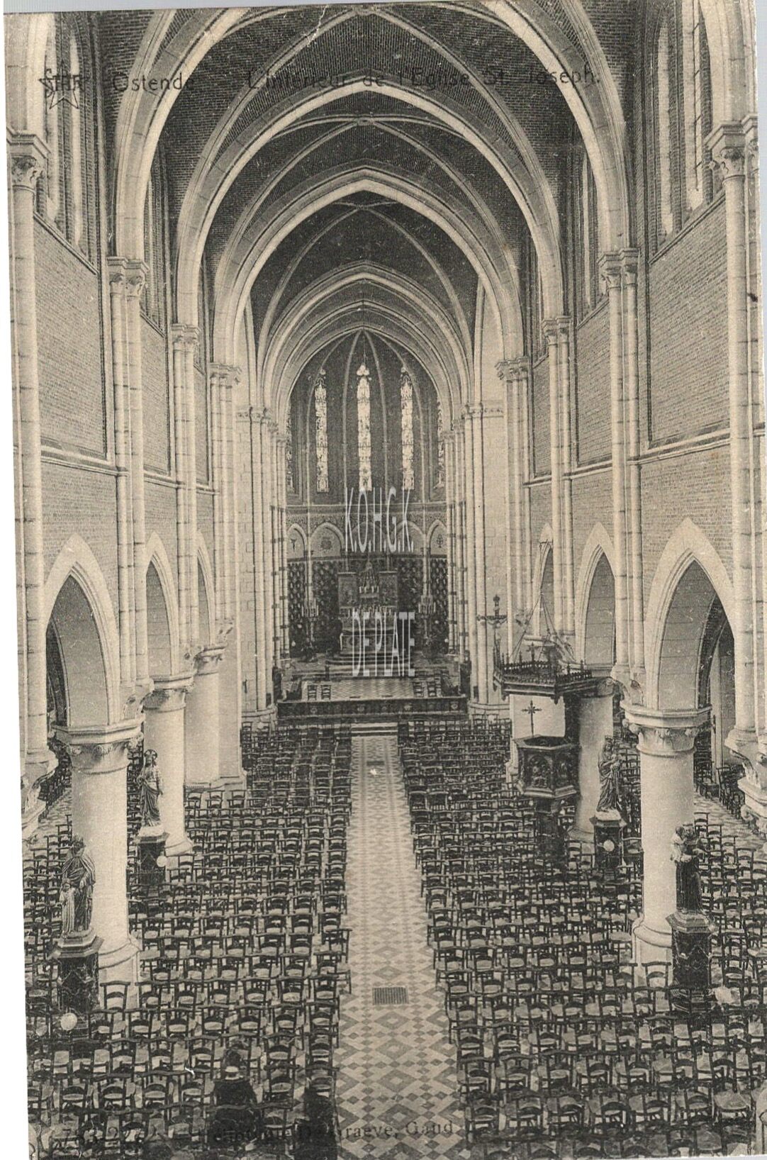 Omschrijving Formaat : 15 x 10 cm. - Binnenzicht van de Sint-Jozefskerk Trefwoorden POSTKAARTEN STAR SINT-JOZEFSKERK (PAROCHIEKERK) INTERIEURS RELIGIEUZE GEBOUWEN Plaatskenmerk ARCHIEF 202 08-09 POSTKAARTENARCHIEF Inventarisnummers 2022/2077 Collectie Fotoarchief De Plate Herkomst AANKOOP Uitgever Star (Gent/Gand) Print