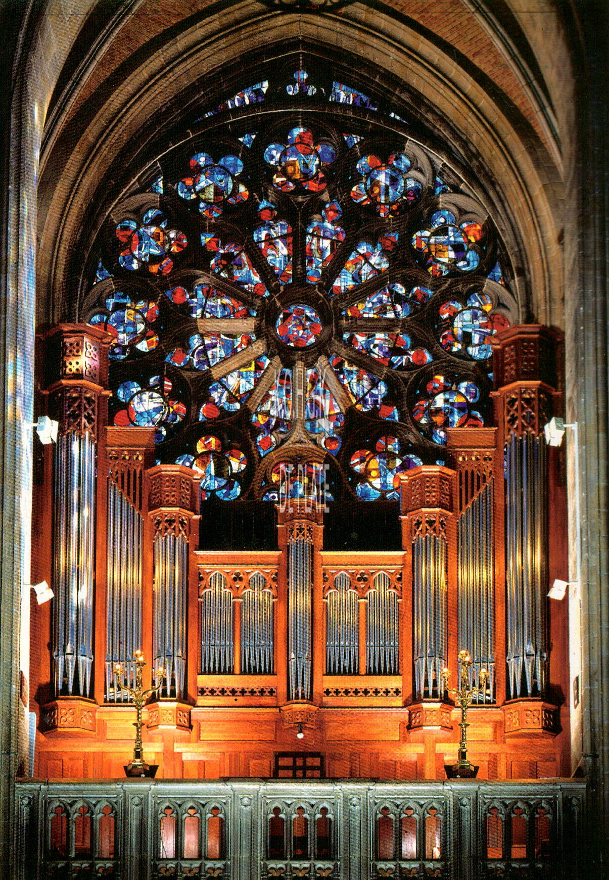 Nels. - SS. Petrus en Pauluskerk - Roosvenster en orgel. Eglise S.S. Pierre et Paul - La rosace et l'orgue. Church of S.S. Peter and Paul - Rose window and organ. Sankt Peter und Paulus Kirche - Einsatzrose und Orgel (schijven 1907 - Flentrop 1999)