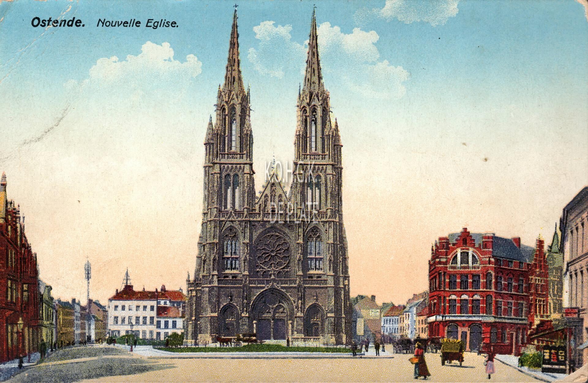 Le Bon, édit, Ostende. - Ostende - Nouvelle Eglise. - Bijgekleurde kaart. - De Sint Petrus en Pauluskerk gezien vanaf het Sint Petrus en Paulusplein.