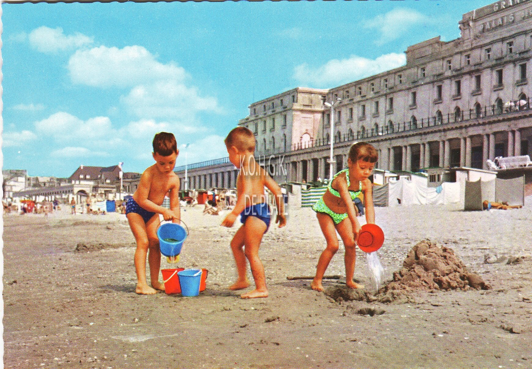 JC. - Strandrecreatie op het Groot Strand nabij de Koninklijke Gaanderijen gelegen langs de Zeedijk. In het midden, het Thermae Palace