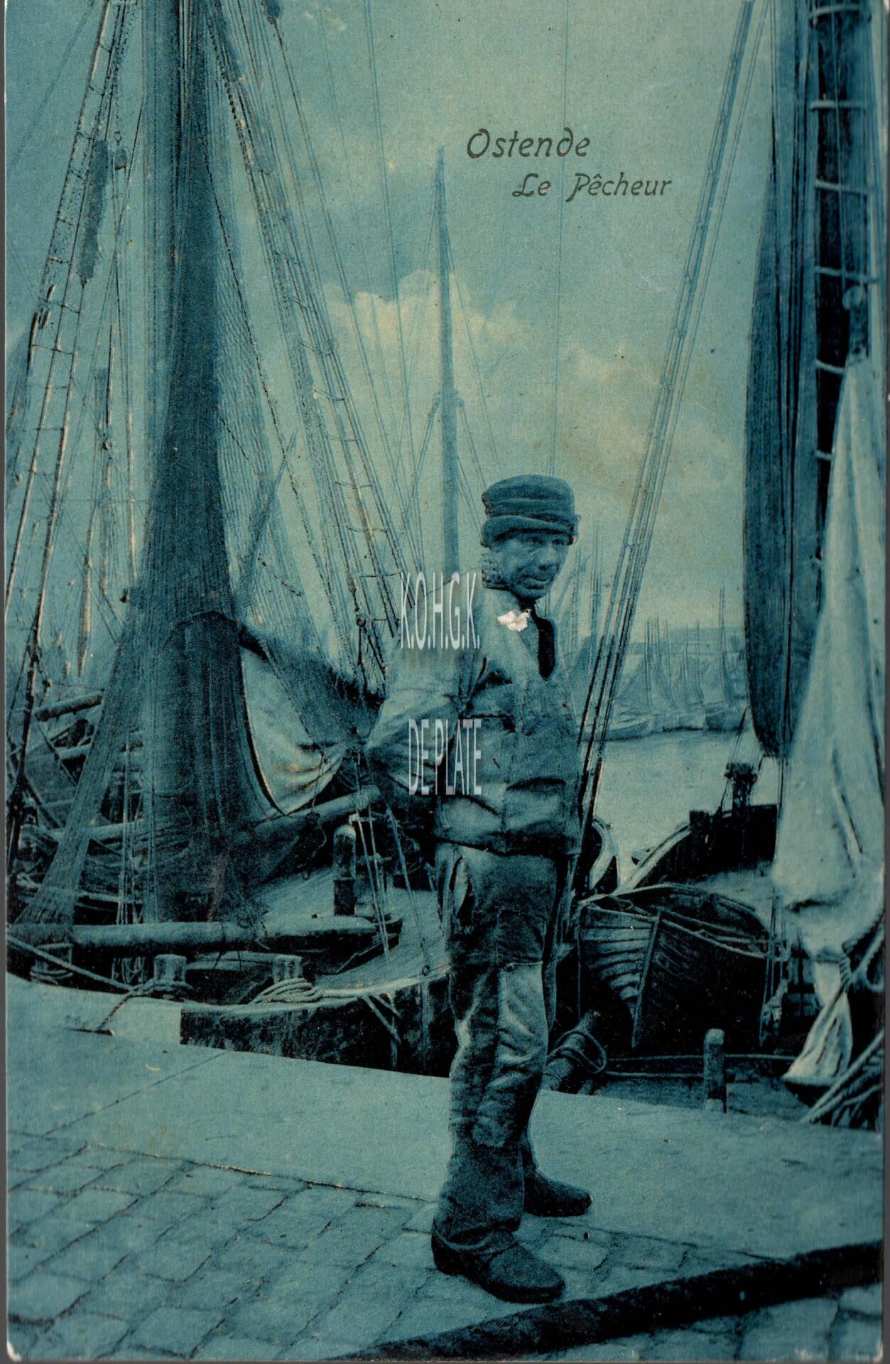 Dr Trenkler C°, Bruxelles, Osd., N°3. - Ostende - Le Pêcheur. - Bijgekleurde kaart. - Visser nabij het Schuildok