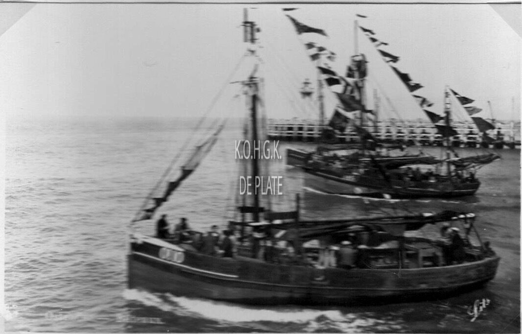 Omschrijving Real Photo. - Bevlagd en met de familie aan boord, hoogstwaarschijnlijk om deel te nemen aan de Zeewijding. - Map 023 D-133a Trefwoorden POSTKAARTEN REAL PHOTO O.110 HET VLIEGMACHIEN HET VLIEGMACHIEN (VISSERSVAARTUIG) SCHEPEN ; HET VLIEGMACHIEN (VISSERSVAARTUIG) VISSERSVAARTUIGEN HAVENGEUL Plaatskenmerk MAP 023 D VISSERIJ Inventarisnummers 2020/3091 Herkomst DE LANGHE JEAN Uitgever Real photo Brussel Print