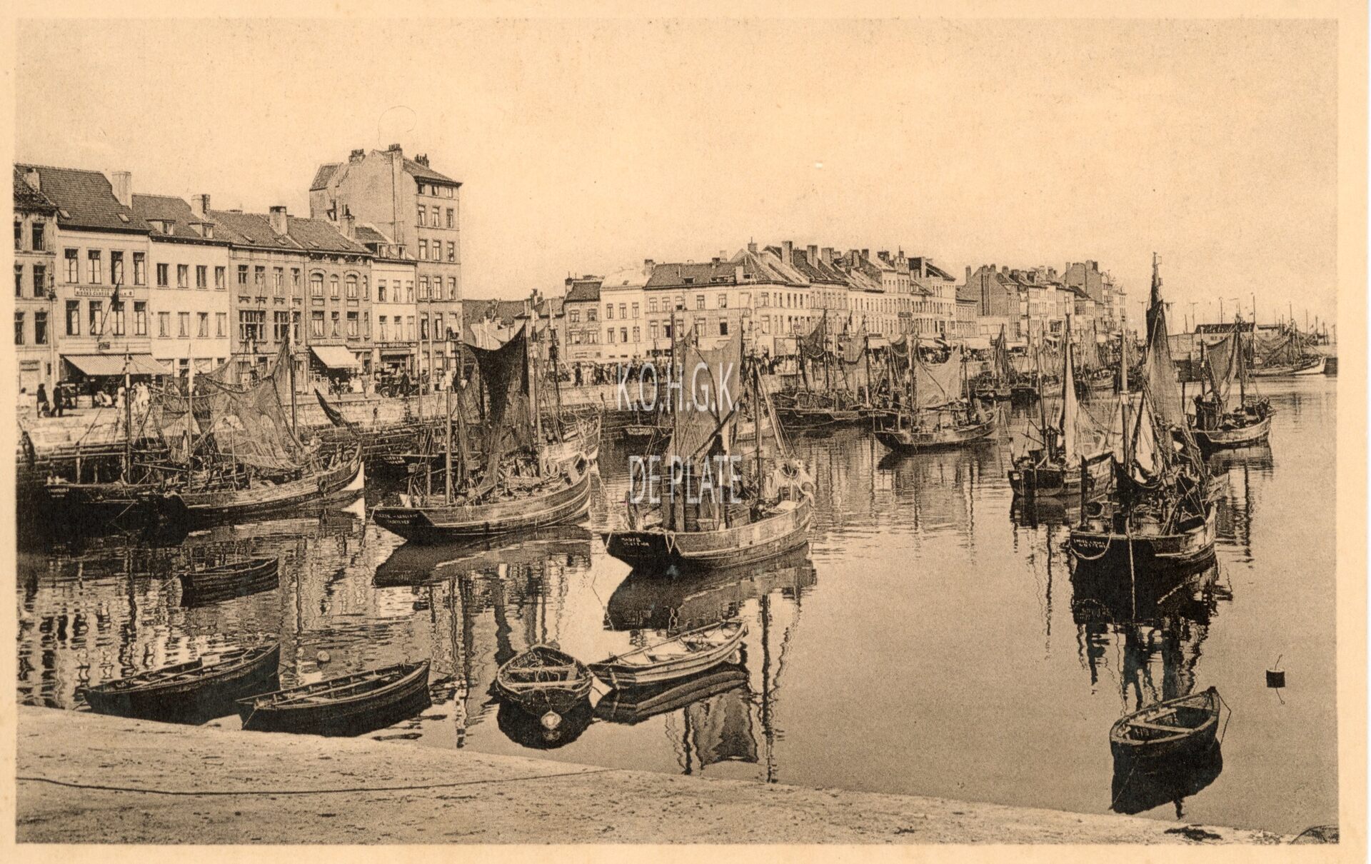 Nels/Thill. - Vissersvaartuigen aangemeerd in het Schuildok. Links, de Visserskaai