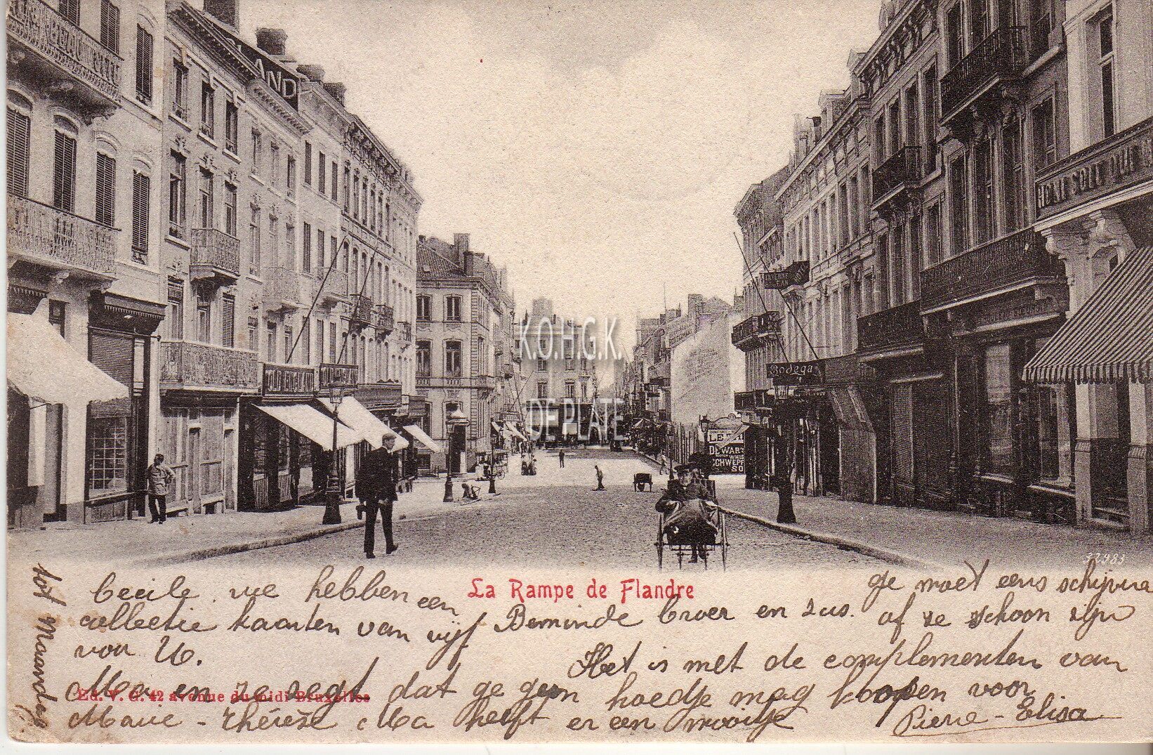 Edit. V.G. [=Victor Grégoire], 42, Avenue du Midi, Bruxelles. - Ostende - La rampe de Flandre. - Een gehandicapte wordt in zijn wagen de helling opgeduwd.