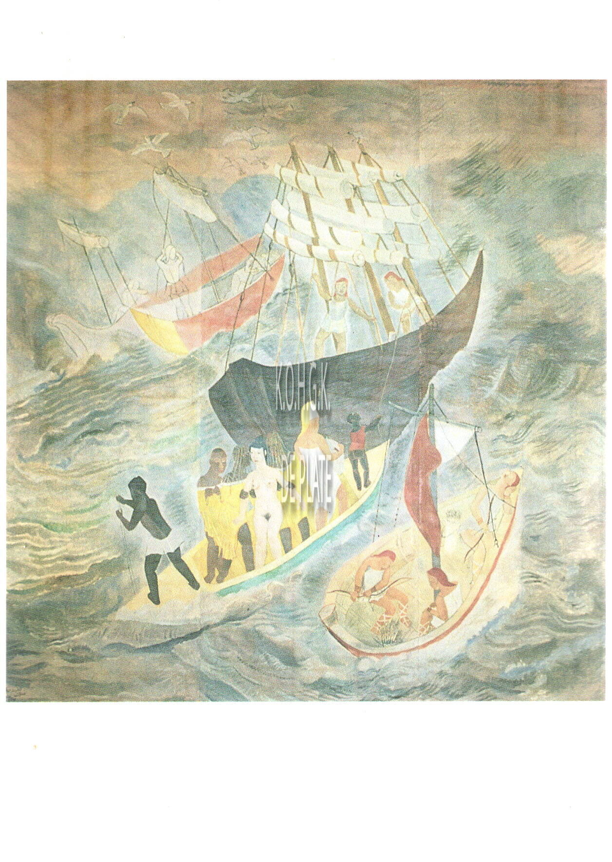 Formaat : 15 x 10,5 cm. - Ontwerp van het wandtapijt.