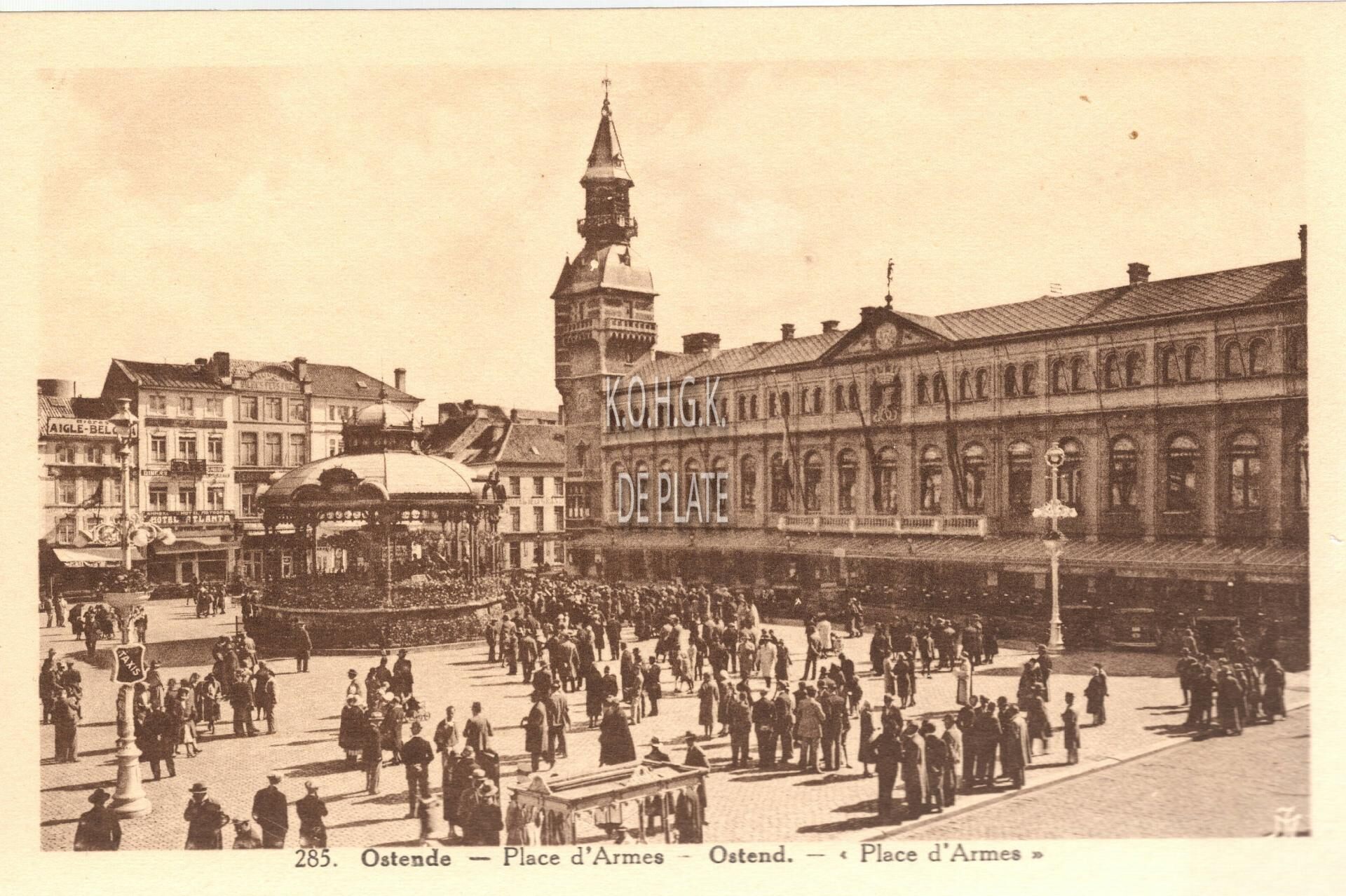 Omschrijving Formaat : 8 x 13 cm. - Jacobs 285. - Ostende-Place d'Armes - Ostend-"Place d'Armes" Trefwoorden POSTKAARTEN JACOBS WAPENPLEIN KIOSK (WAPENPLEIN) STADHUIS ; WAPENPLEIN Plaatskenmerk FOTOARCHIEF 202 08-09 POSTKAARTENARCHIEF Inventarisnummers 1984/0167 Collectie Fotoarchief De Plate Herkomst VAN HOECK JAN Uitgever Jacobs P.V. Vervaardiger Jacobs Print