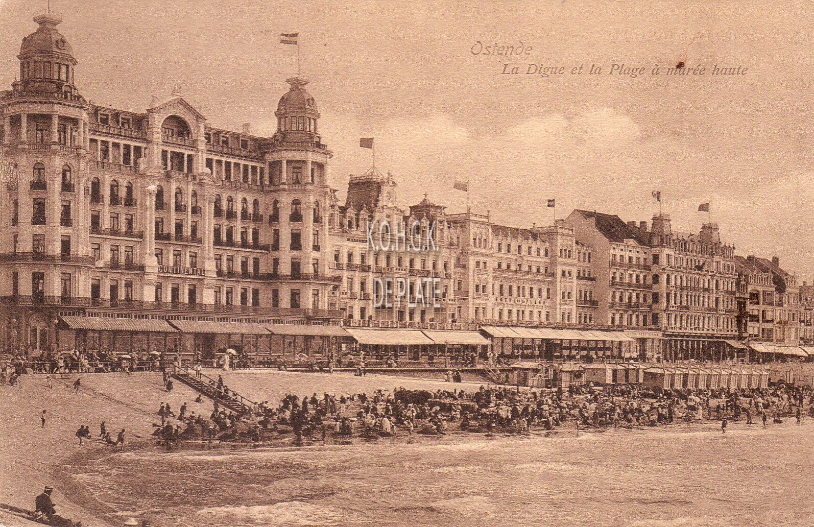 Edit. V.G. [=Victor Grégoire], 42, Avenue du Midi, Bruxelles. - Ostende - La Digue et la Plage à marée haute. - De Zeedijk gezien vanaf het Kursaal richting het Koninklijk Chalet. Het grote hotel vooraan is "Hôtel Continental"