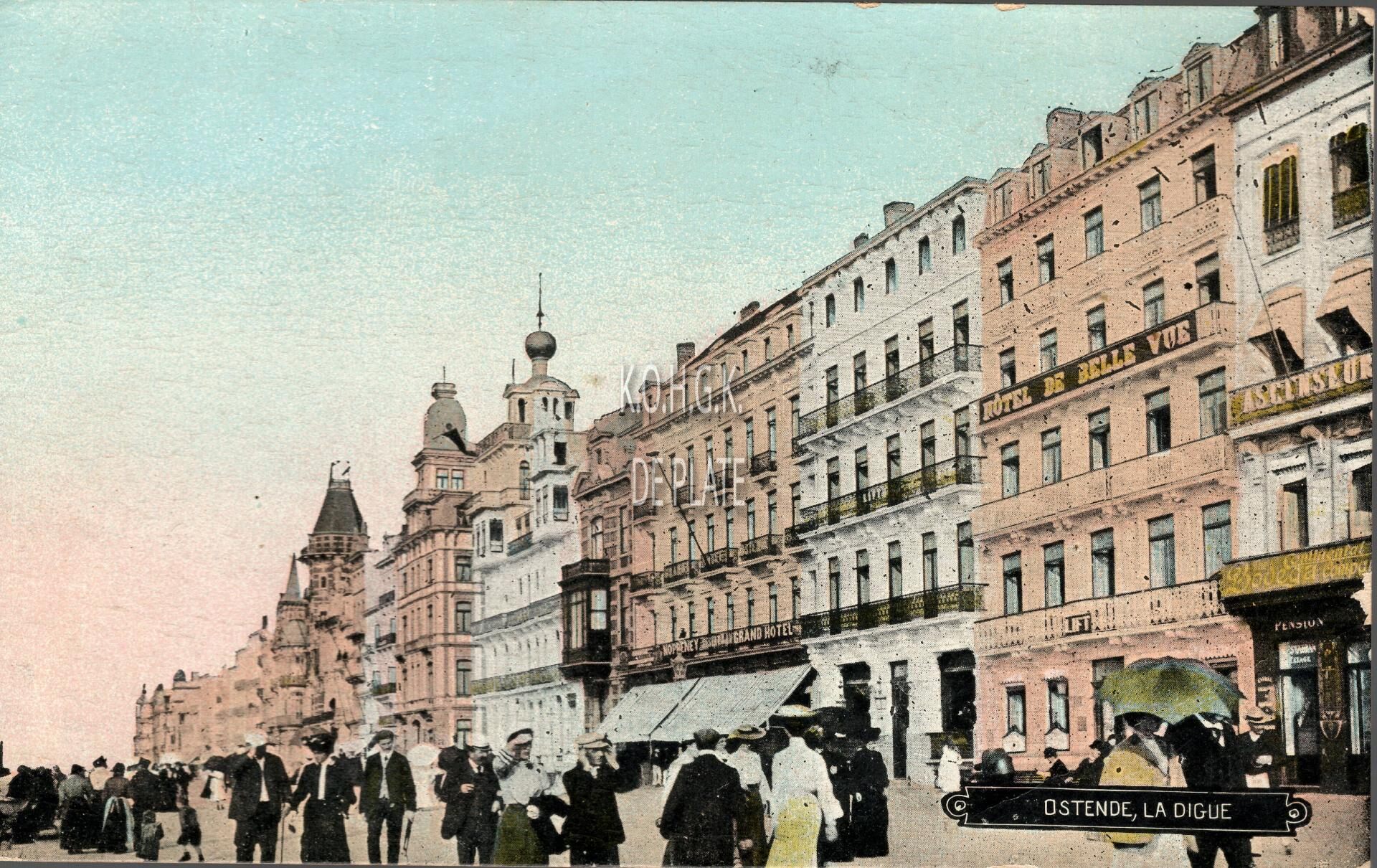 Omschrijving Ostende, la digue. - Bijgekleurde kaart. - De Zeedijk ten westen van het Kursaal. Trefwoorden POSTKAARTEN ZEEDIJK HOTELS (OUDE) Plaatskenmerk ARCHIEF 202 08-09 POSTKAARTENARCHIEF Inventarisnummers 2021/1927 Collectie Fotoarchief De Plate Print