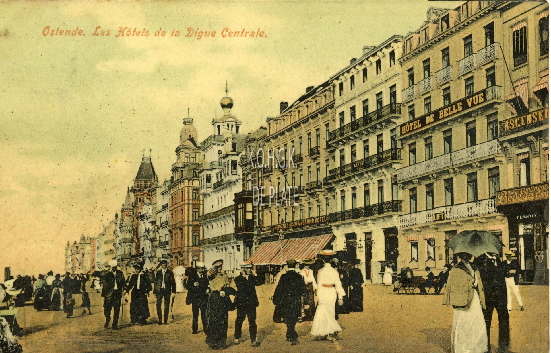 Omschrijving 0stende - Les Hôtels de la Digue Centrale. Bijgekleurde kaart. - De Zeedijk vanaf de Kursaal-Oosthelling richting havengeul Trefwoorden POSTKAARTEN N.N. ZEEDIJK HOTEL DE BELLE VUE HOTELS (OUDE) Plaatskenmerk ARCHIEF 202 08-09 POSTKAARTENARCHIEF Inventarisnummers 2015/0366 Collectie Fotoarchief De Plate Herkomst AANKOOP Print