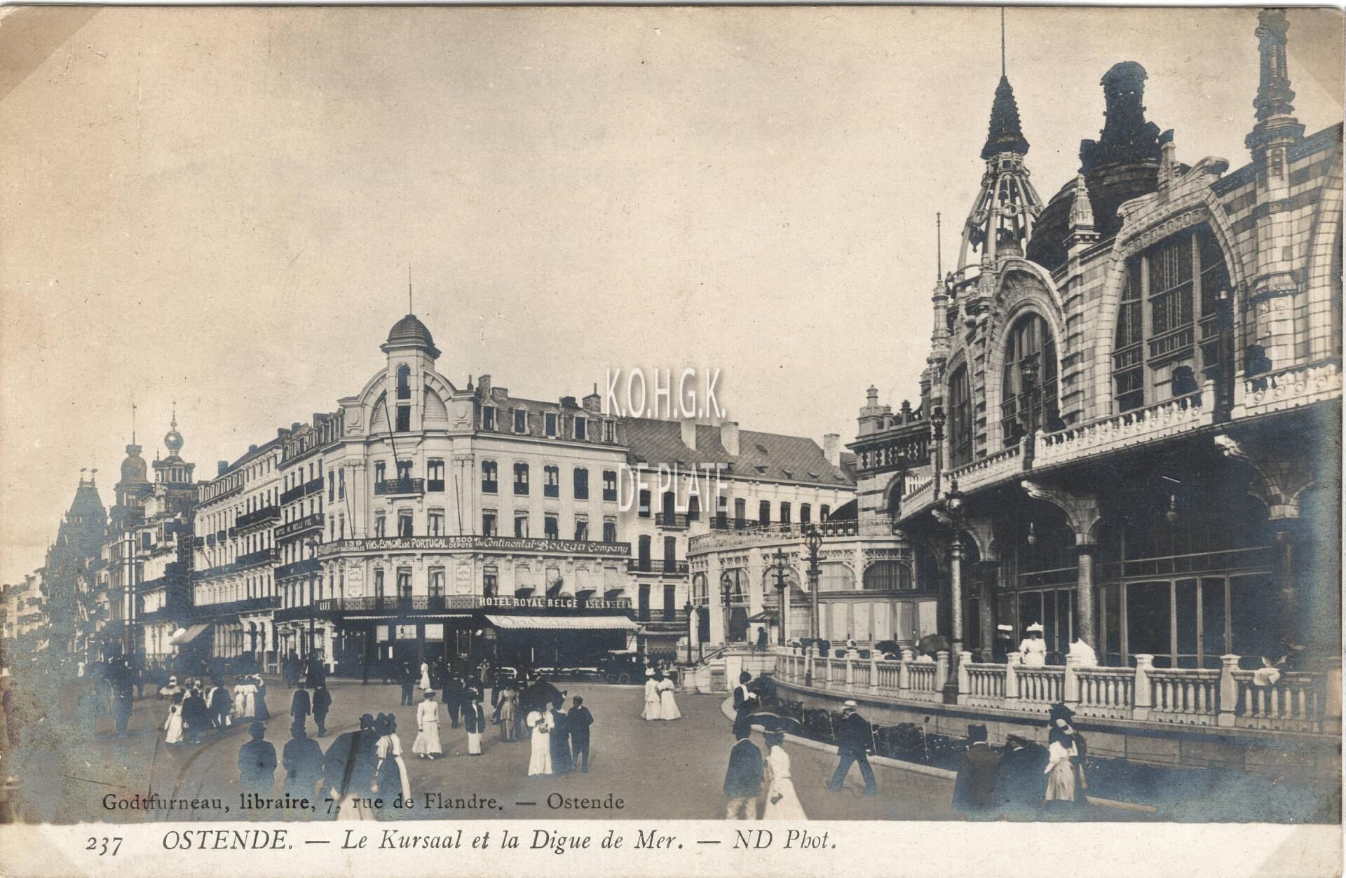 [Neurdein], ND Phot, nr.237 + Godtfurneau, Libraire, 7, Rue de Flandre, Ostende. - Ostende - Le Kursaal et la Digue de Mer. - De Zeedijk gezien vanaf het derde Kursaal richting havengeul. Op de hoek met de Kursaal-Oosthelling het "Hôtel Royal Belge". - Map 015 A-61b