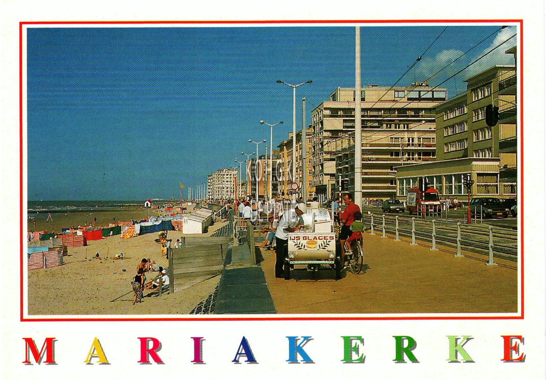 AVM, N° A345. - Oostende Mariakerke. - Strand en zeedijk. - Plage et digue de mer. - Beach and promenade. - Strand und promenade. - Rechts: De Kinkhoorn, Zeedijk 330