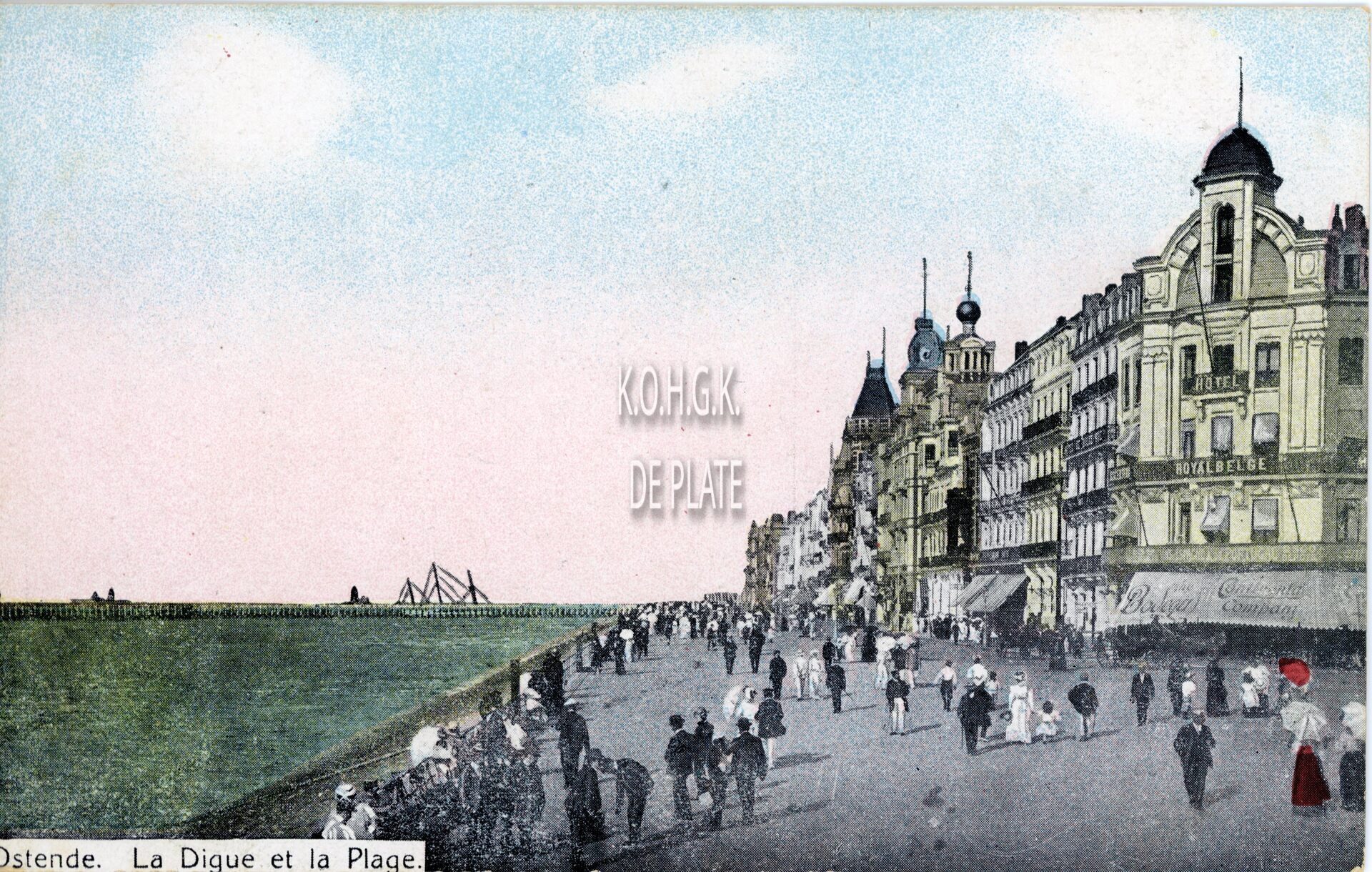 Victor Grégoire/V.G. - Ostende - La digue et la plage. - Bijgekleurde kaart.