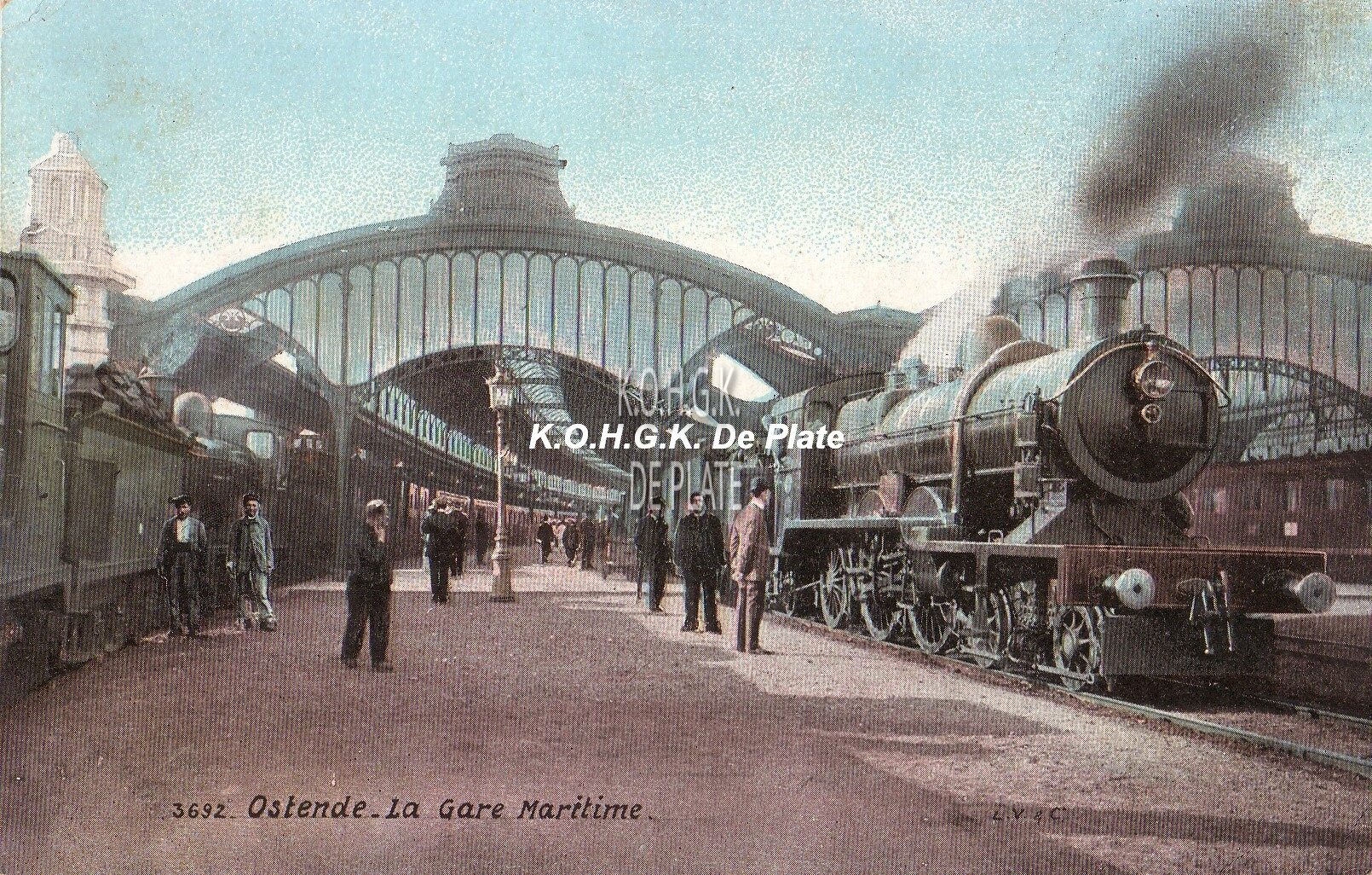 Aqua Photo, N°3692. - Ostende - La Gare Maritime. - Bijgekleurde kaart. - Zicht op de stationsoverkapping en let op de niet verhoogde perrons.