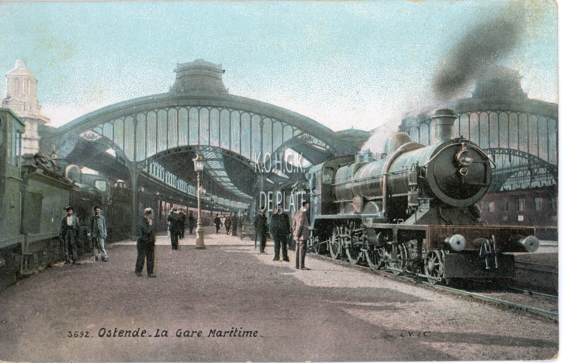 Omschrijving Aqua Photo 3692. - Ostende - La Gare Maritime. - Bijgekleurde kaart. Zicht op de stationsoverkapping en let op de niet verhoogde perrons. Trefwoorden POSTKAARTEN AQUA PHOTO ZEESTATION (1913-heden) SPOORWEGEN ; STATIONS SPOORWEGEN ; TREINEN Plaatskenmerk ARCHIEF 202 08-09 POSTKAARTENARCHIEF Inventarisnummers 2015/0736 Collectie Postkaartenarchief De Plate Herkomst AANKOOP Uitgever Aqua Photo Print