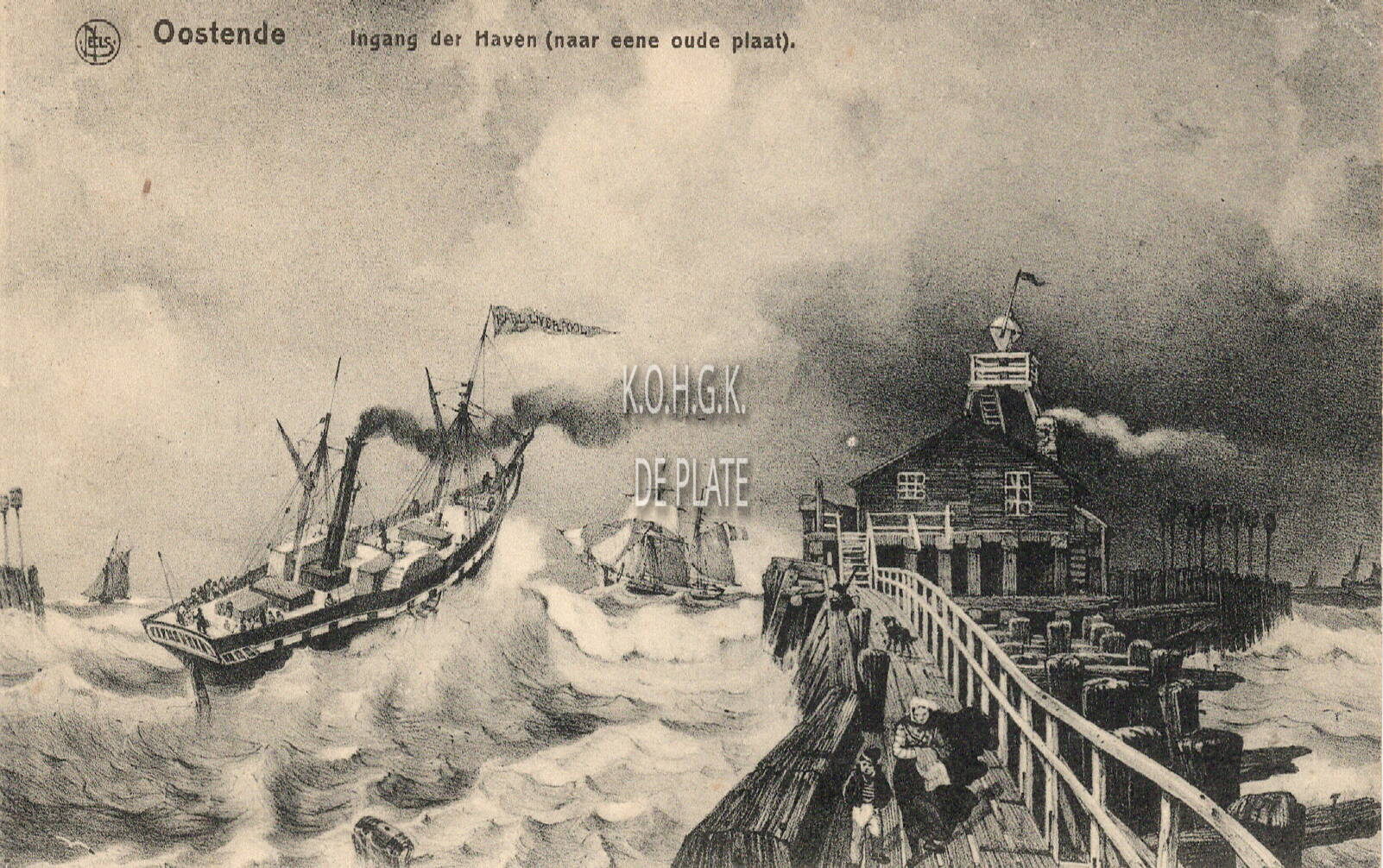 Formaat : 9 x 14 cm. - Nels. - Ern. Thill reeks 13 n° 41. - Oostende - Ingang der Haven (naar een oude plaat)