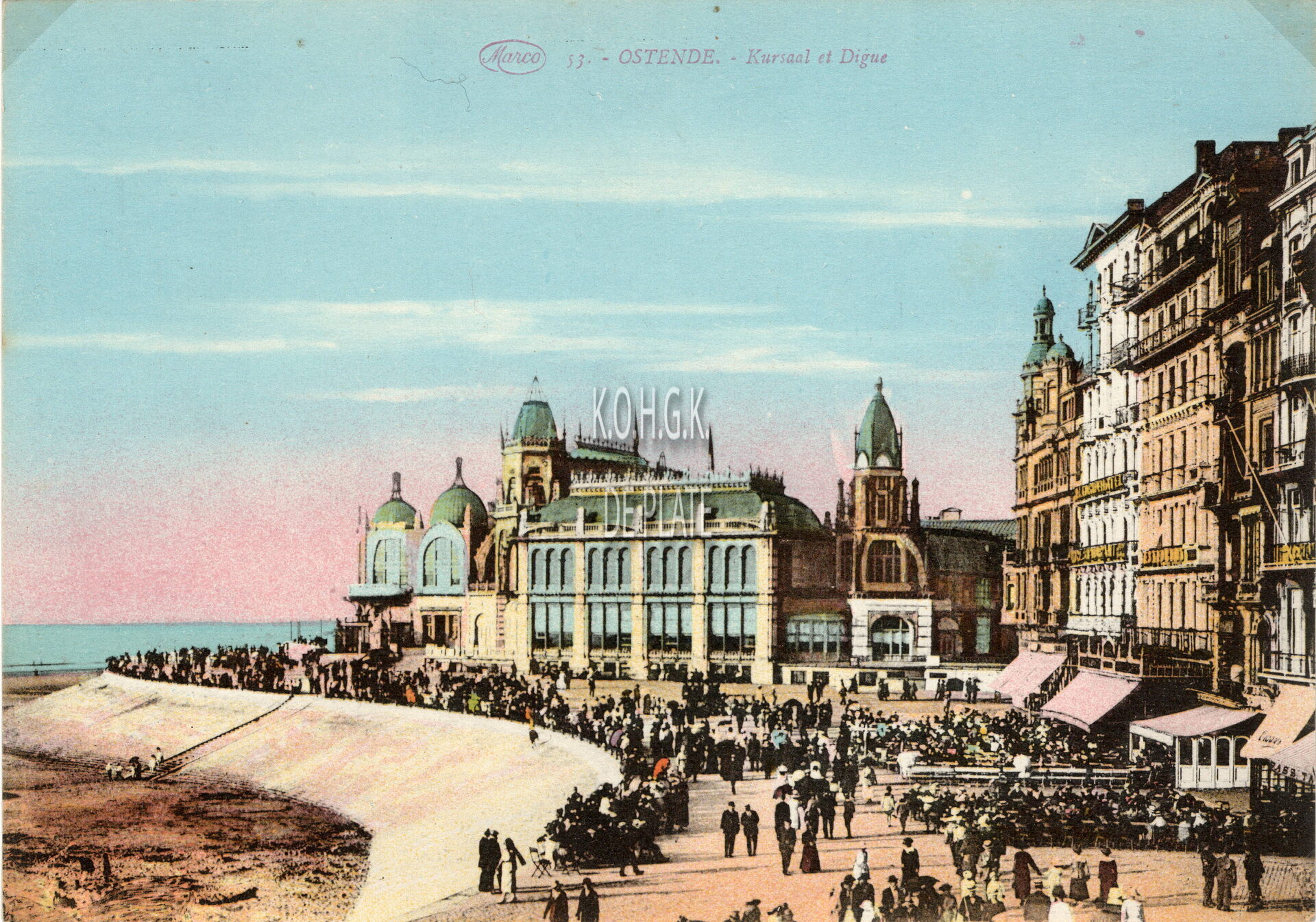Omschrijving Marco Marcovici 53. - Ostende - Kursaal et Digue. - Bijgekleurde kaart. De westgevel van het derde Kursaal en de Zeedijk Trefwoorden POSTKAARTEN MARCOVICI CASINO-KURSAAL (1899-1907-1943) ZEEDIJK Plaatskenmerk ARCHIEF 202 08-09 POSTKAARTENARCHIEF Inventarisnummers 1977/2306 Collectie Postkaartenarchief De Plate Uitgever Marcovici (Brussel) Print