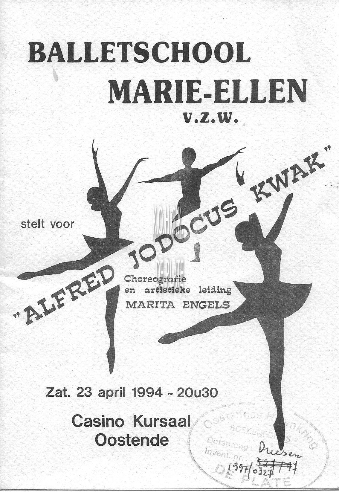 Omschrijving Choreografie en artistieke leiding : Marita Engels Trefwoorden CASINO-KURSAAL ; PROGRAMMA'S BALLETSCHOOL MARIE ELLEN ALFRED JODOCUS KWAK (BALLET) CASINO-KURSAAL (1953) ; BALLET ENGELS MARITA (CHOREOGRAFE) BALLET Plaatskenmerk ARCHIEF 110 ARCHIEFDOOS KURSAAL Inventarisnummers 1997/0327 23/ 04/ 1994 Herkomst Dreesen J.B. Bestanden 1997-0327a.pdf Print
