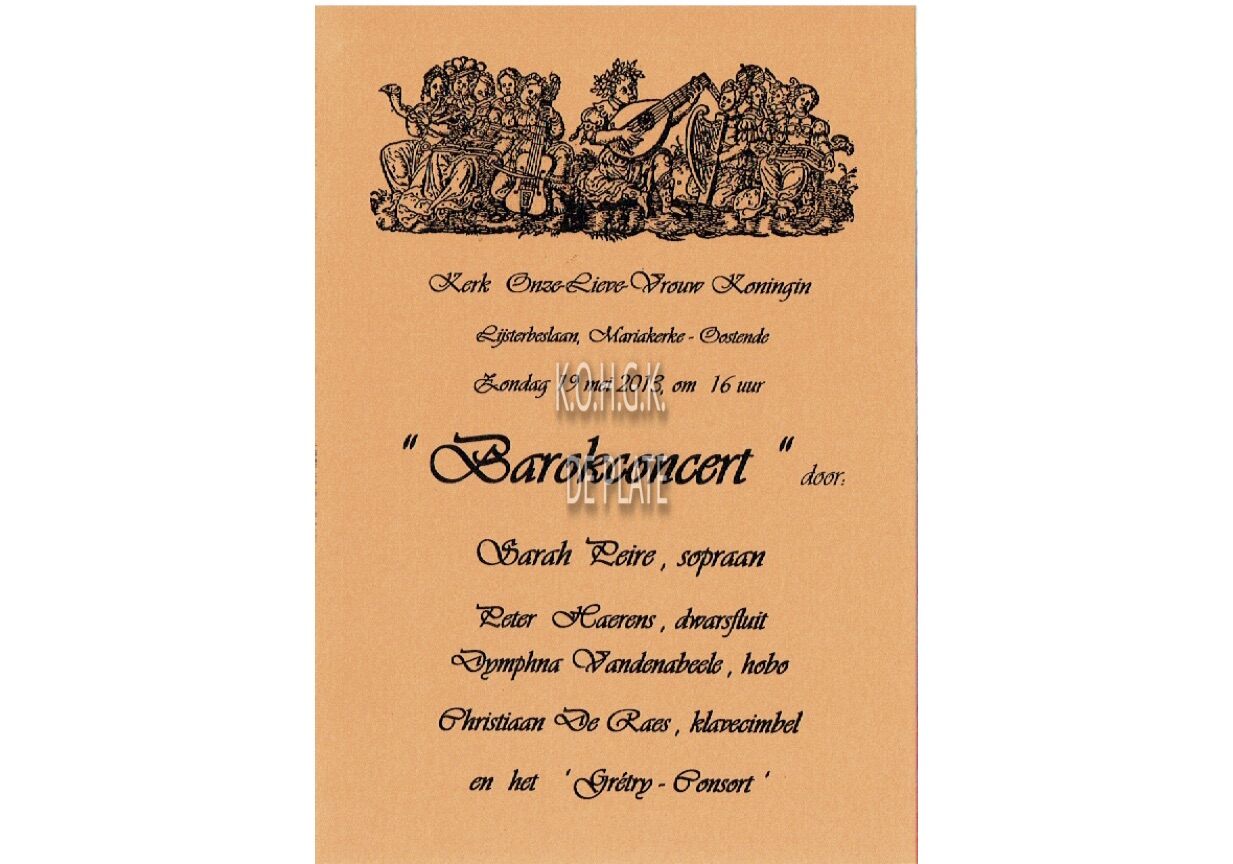 Trefwoorden PROGRAMMA'S ONZE LIEVE VROUW KONINGINKERK MARIAKERKE HAERENS PETER (FLUITIST) VANDENABEELE DYMPHNA (MUZIKANTE) DEWULF BERNARD ( VIOLIST) VANBALLENBERGHE NATHALIE (VIOLISTE) DIERENDONCK HARALD (VIOLIST) BEELAERTS LIESEMARIE (CELLISTE) DE RAES CHRISTIAAN (MUZIKANT) MUZIKANTEN GRÉTRY-CONSORT (MUZIEKGROEP) MUZIEKGROEPEN PEIRE SARAH (SOPRAAN) Plaatskenmerk ARCHIEF 110 ARCHIEFDOOS KUNSTEN Inventarisnummers 2022/1218 19/ 05/ 2013 Collectie Archief De Plate Herkomst DE RAES CHRISTIAAN Bestanden 2022:1218.pdf Print