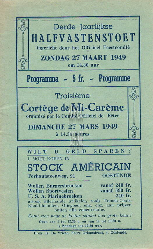 Programma : Derde jaarlijkse halfvastenstoet 1949
