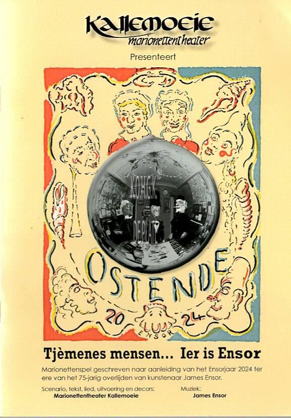 Marionettenspel geschrevennaar aanleiding van het Ensorjaar 2024 ter ere van het 75-jarig overlijden van kunstenaard James Ensor. - Scenario, tekst, lied, uitvoering en decors: Marionettentheater Kallemoeie. - Muziek: James Ensor