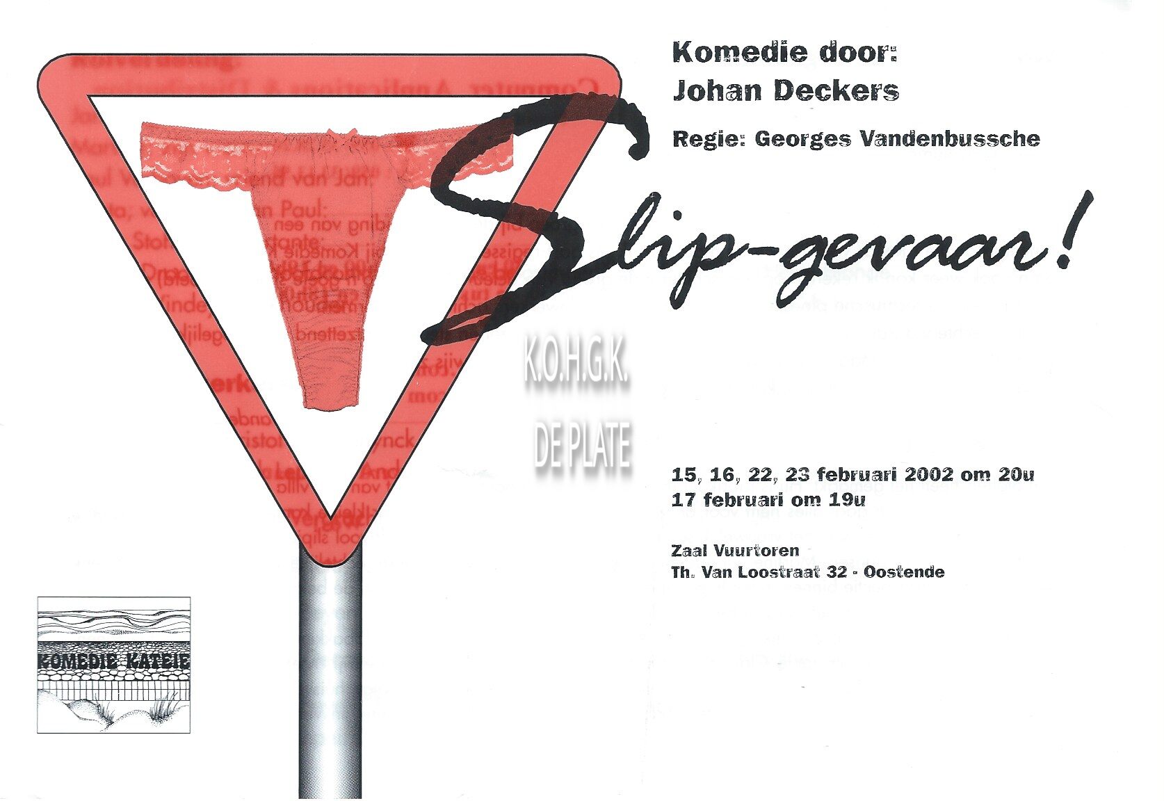 Omschrijving Komedie door : Johan Deckers. Regie : Georges Vandenbussche Trefwoorden PROGRAMMA'S KOMEDIE KATEIE (TONEELVERENIGING) SLIP-GEVAAR (TONEELSTUK) TONEELSTUKKEN DECKERS JOHAN (AUTEUR) VANDENBUSSCHE GEORGES (TONEELREGISSEUR) ZAAL VUURTOREN (THOMAS VAN LOOSTRAAT) Plaatskenmerk ARCHIEF 110 ARCHIEFDOOS KUNSTEN Inventarisnummers 2022/0002 15/ 02/ 2002 23/ 02/ 2002 Bestanden 2022-0002a.pdf Print