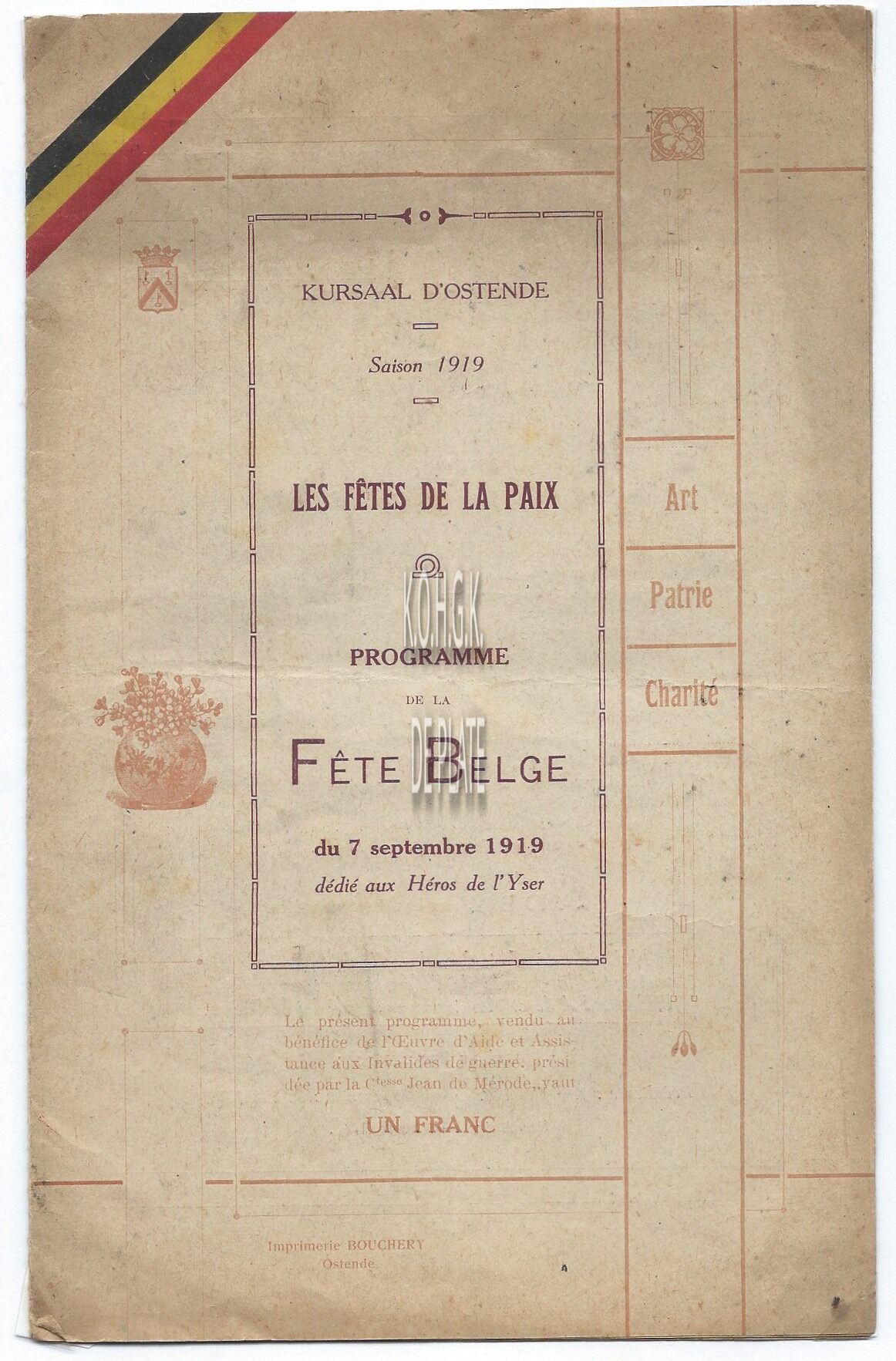 Programma : Les fêtes de la paix. Kursaal d'Ostende. 07/09/1919