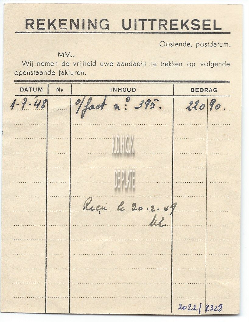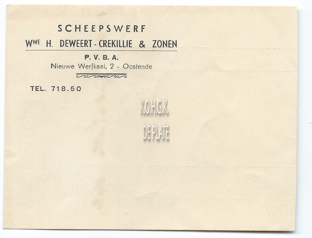Rekening uittreksel : We Henri Deweert-Crekillie en Zonen. Scheepswerf. Nieuwe Werfkaai 2, Oostende
