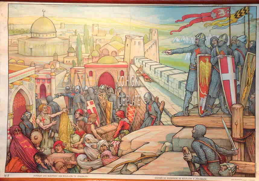Trefwoorden ONDERWIJS ; LEERMIDDELEN SCHOOLWANDPLATEN GESCHIEDENIS ; MIDDELEEUWEN GODFRIED VAN BOUILLON (1060-1100) VAN OFFEL EDMOND (1871-1959) (KUNSTSCHILDER) Plaatskenmerk MD 117.8/SCHOOLWANDPLATEN/D1 Inventarisnummers 2016/1709 Herkomst MEENS P. (MEVROUW) Materiaal soort Linnen en hout Vervaardiger BOSSAERTS Kenmerken H 60 cm B 88 cm Collectie Schoolwandkaarten Schoolwandplaten Print