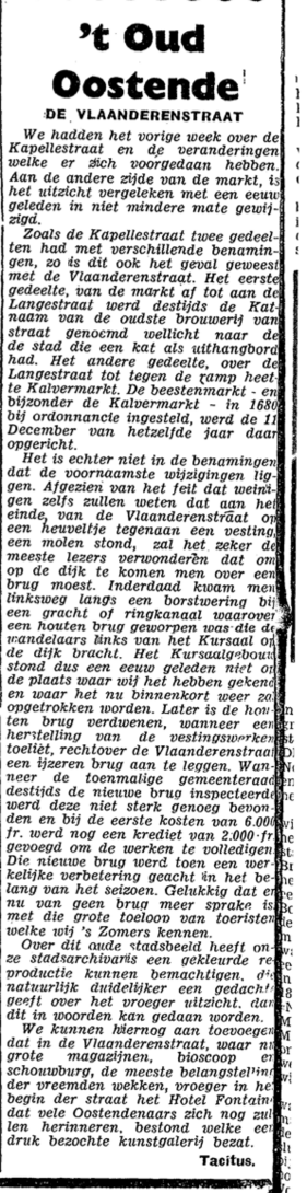 Trefwoorden VLAANDERENSTRAAT PLAATSNAAMKUNDE Plaatskenmerk O.D.P.-archieven. Bibliotheek Kris Lambert KBOD1947 17-10-1947 Bron De Kustbode Pagina's 2 Print
