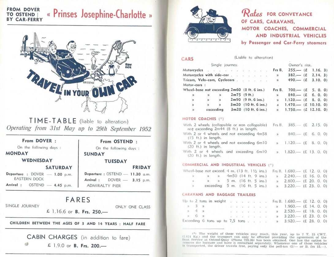 Trefwoorden ZEEWEZEN EN RMT ; TARIEVEN ZEEWEZEN EN RMT ; UURREGELINGEN OOSTENDE DOVER LIJN PRINSES JOSEPHINE CHARLOTTE (CARFERRY) SCHEPEN ; PRINSES JOSEPHINE CHARLOTTE (CARFERRY) CARFERRY'S Plaatskenmerk C706 Deelbeschrijving uit boek of document Belgium 1952 : Handbook for motorists : Summer edition 1952 Pagina 12-13 Print