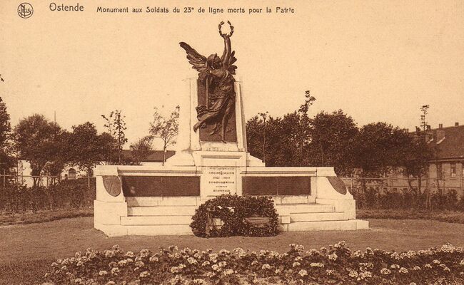 FOTO'SOORLOGSMONUMENTEN3DE LINIEREGIMENT23STE LINIEREGIMENT3DE EN 23STE LINIEREGIMENTSPLEINGRAAF DE SMET DE NAEYERLAANRAU MARCEL (1886-1966) (BEELDHOUWER)MONUMENT VOOR DE GESNEUVELDEN VAN HET 3DE 23STE 33STE EN 53STE LINIEREGIMENTMONUMENTENZORGEGUERMIN (MIJNENBESTRIJDINGSSCHOOL)KAZERNE BOOTSMAN JONSEN