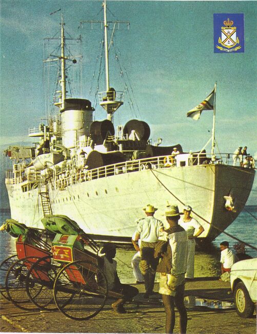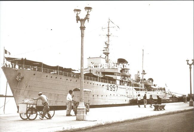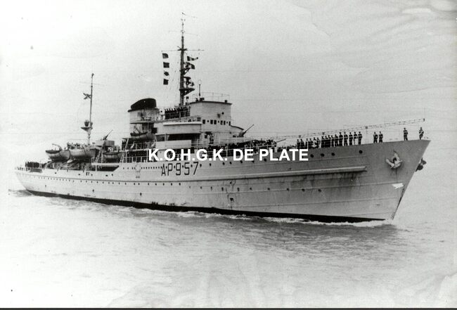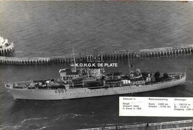 Foto van A 957 Kamina (Commando en Logistiek steunschip 1950-1967) Foto van M 905 De Moor (Kustmijnenveger 1953-1959)