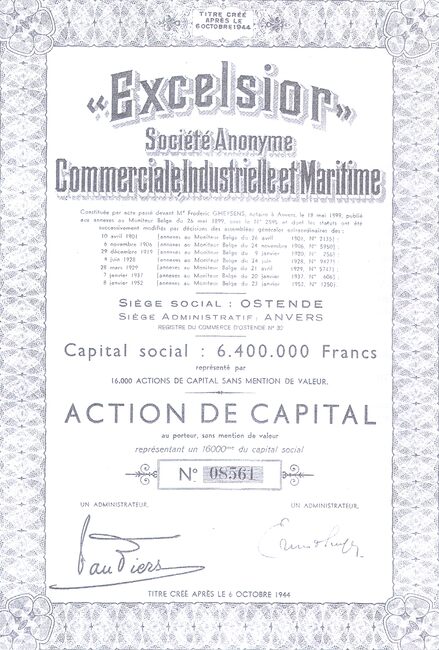 'Excelsior' S. A. Commerciale Industielle et Maritime. Action de capital au porteur.