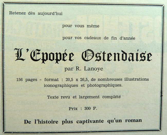 Advertentie : L'Epopée Ostendaise. R. Lanoye