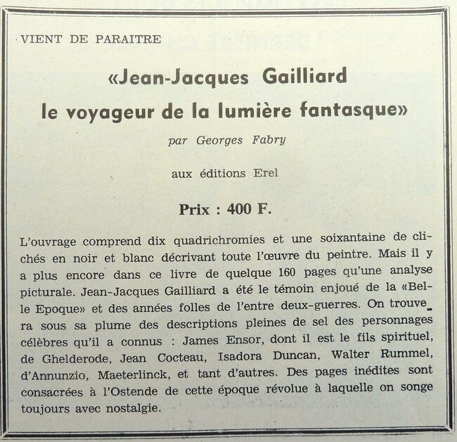 Advertentie : "Jean-Jacques Gailliard le voyageur de la lumière fantasque"