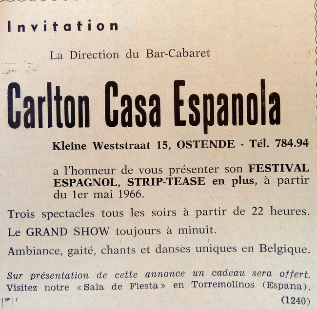 Advertentie : Bar Cabaret Carlton. Kleine Weststraat 15 Oostende