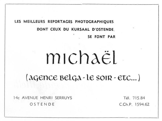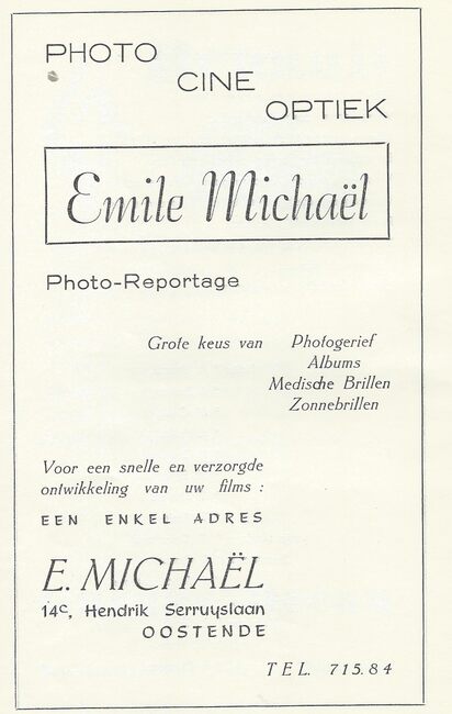 Advertentie : Emile Michaël. Photo - Cine - Optiek. Hendrik Serruyslaan 14c, Oostende