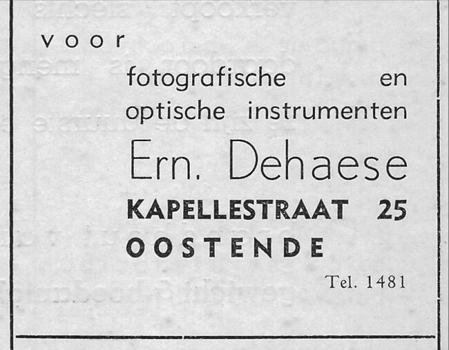 Advertentie : Ern. Dehaese. Fotografische en optische instrumenten. Kapellestraat 25