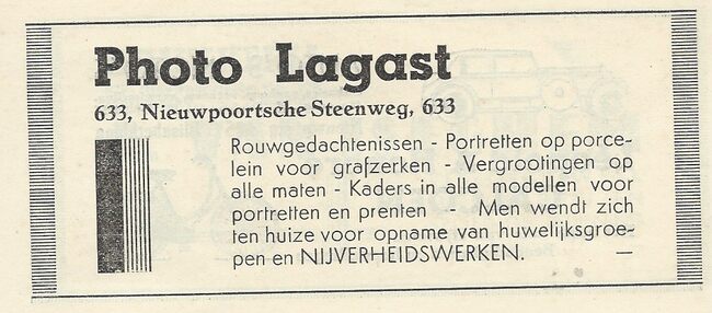 Advertentie : Photo Lagast. Nieuwpoortsesteenweg 633, Oostende