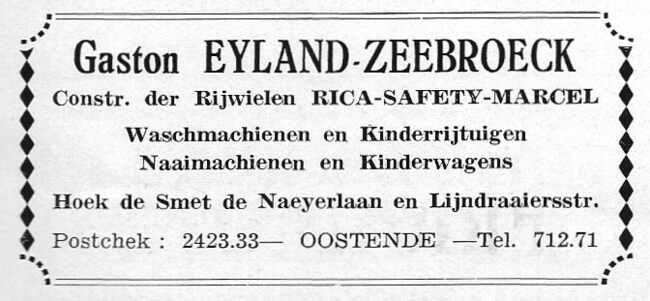 Hoek Graaf de Smet de Naeyerlaan en de Lijndraaiersstraat. Constructeur van de rijwielen Rica - Safety en Marcel. Men verkocht er ook naai- en wasmachines en kinderwagens