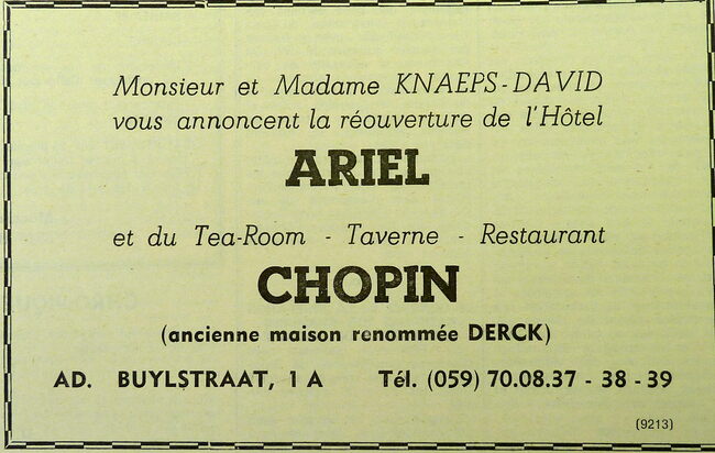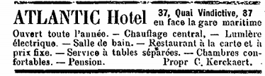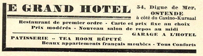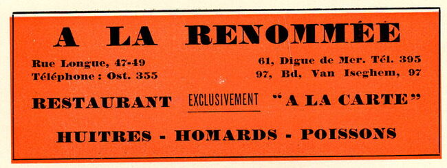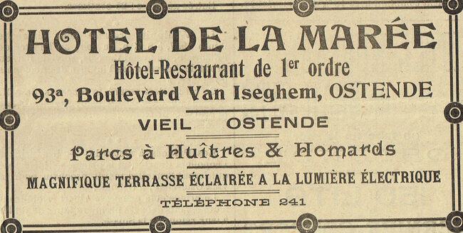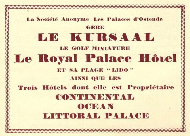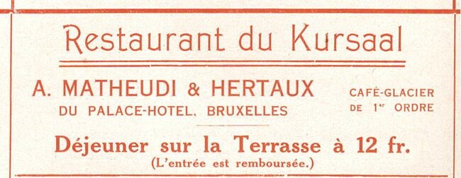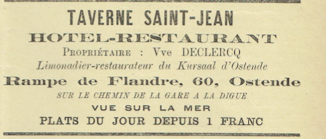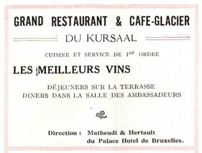 Propriétaire : Vve Declercq. Limonadier-restaurateur du Kursaal d'Ostende