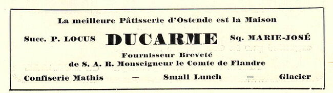 Succ. P. Locus. Fournisseur breveté de S.A.R. Monseigneur le Comte de Flandre. Confiserie Mathis. Small lunch. Glacier.