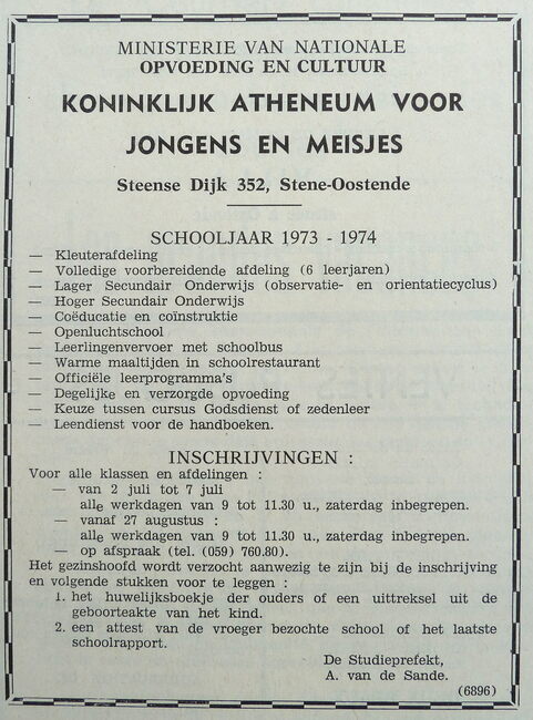 Advertentie : Koninklijk Atheneum voor jongens en meisjes. Steense Dijk 352, Stene-Oostende