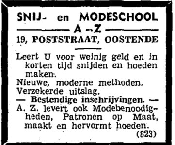 Advertentie : Snij- en Modeschool A-Z. Poststraat 19, Oostende